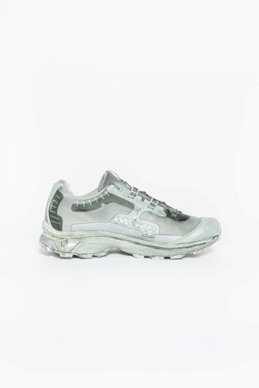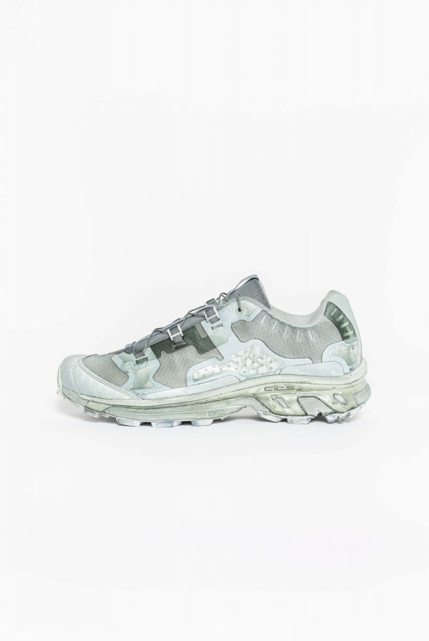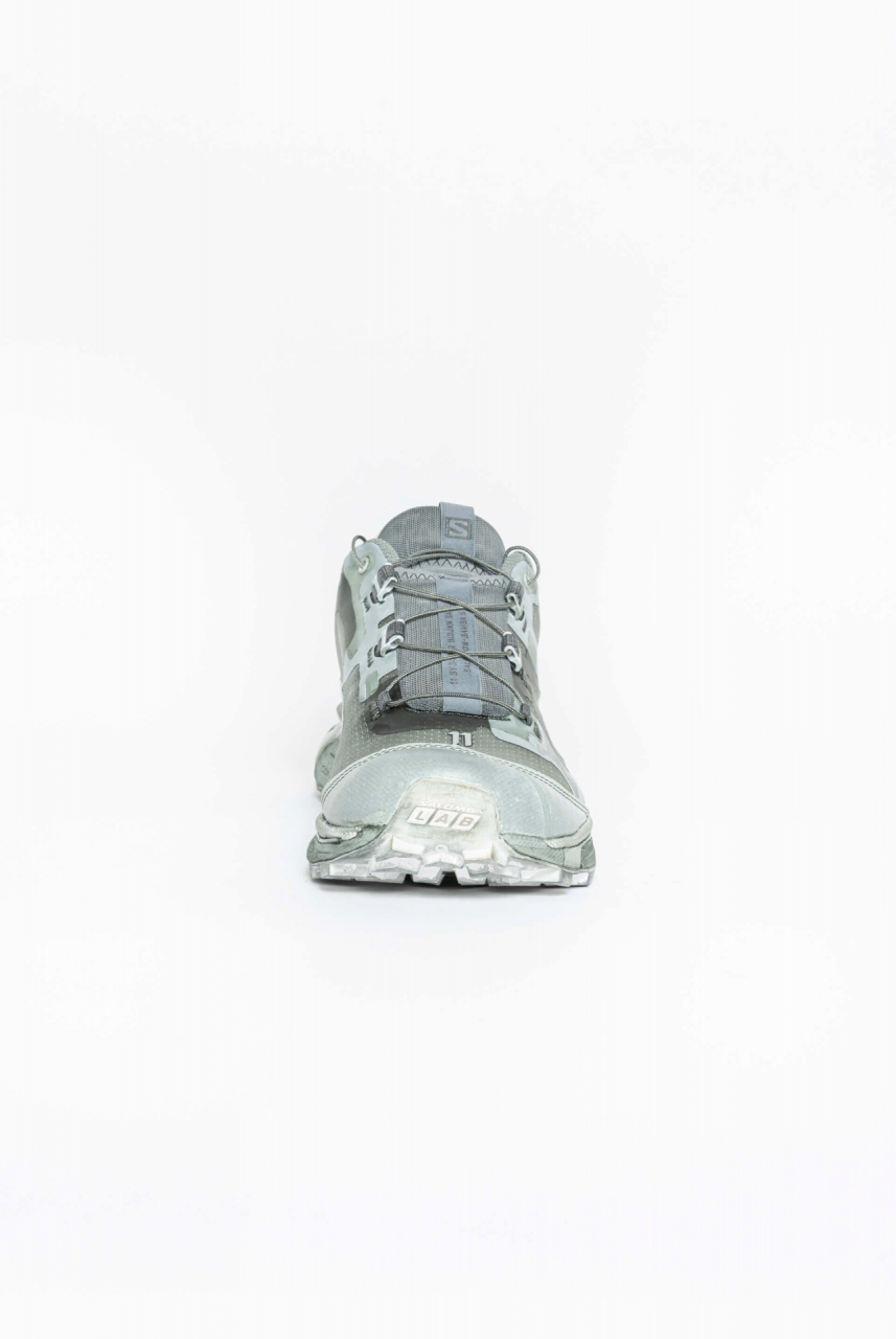 Object dyed low height multifunction trail footwear in Alga. DESCRIPTION Fully object-dyed in Alga. Low height trail footwear with round toe, cleated sole and QuicklaceTM lacing system. 11S logo is featured at front and at rear. This footwear has been created in collaboration with Salomon. Material: 100% Polyester, OUTSOLE: 50% Rubber 50% EVA, SOCKLINER: 100% EVA. Treatment: Object-dyed. Made in China. Material: 100% Polyester OUTSOLE 50% Rubber 50% EVA SOCKLINER: 100% EVA. Treatment: Object-dyed. Made in Vietnam.