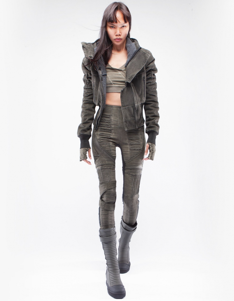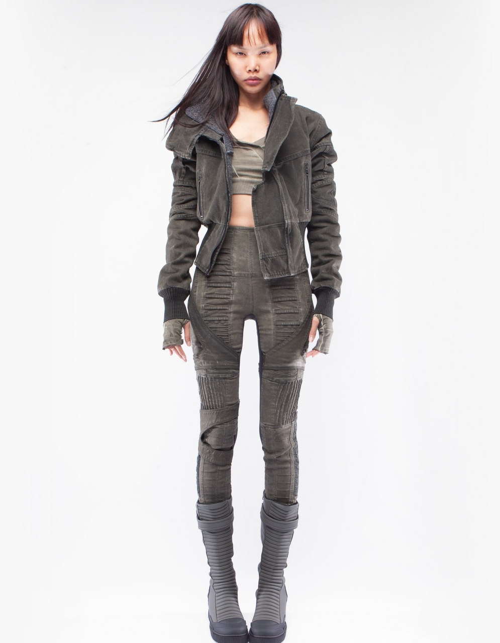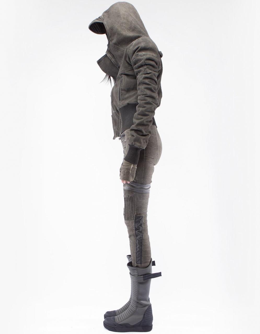 detailed hooded denim bomber jacket with winter lining closing by zipper, zipped pockets vintage washed effect