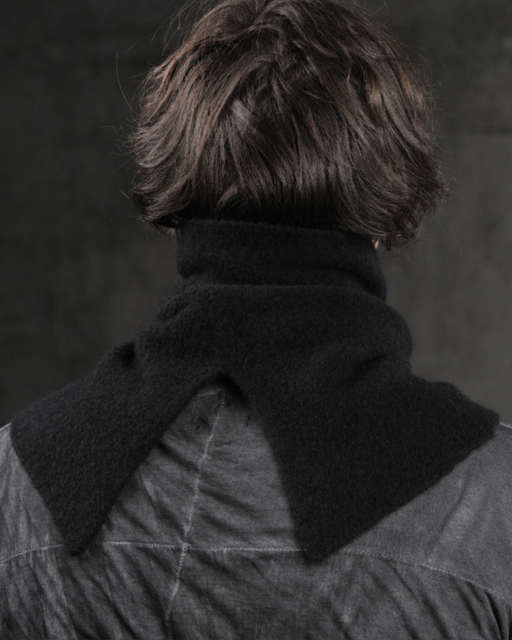 Черный вязаный шарф снуд из смеси кашемира и шелка.