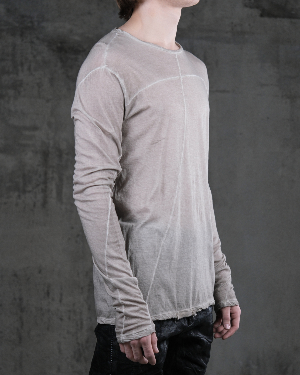 Men's long sleeve tee in perl resin resinated lightweight cotton jersey