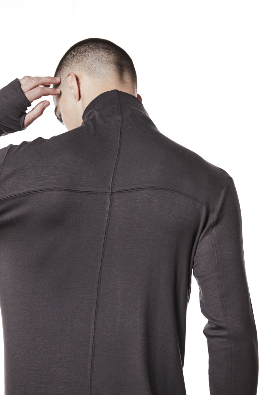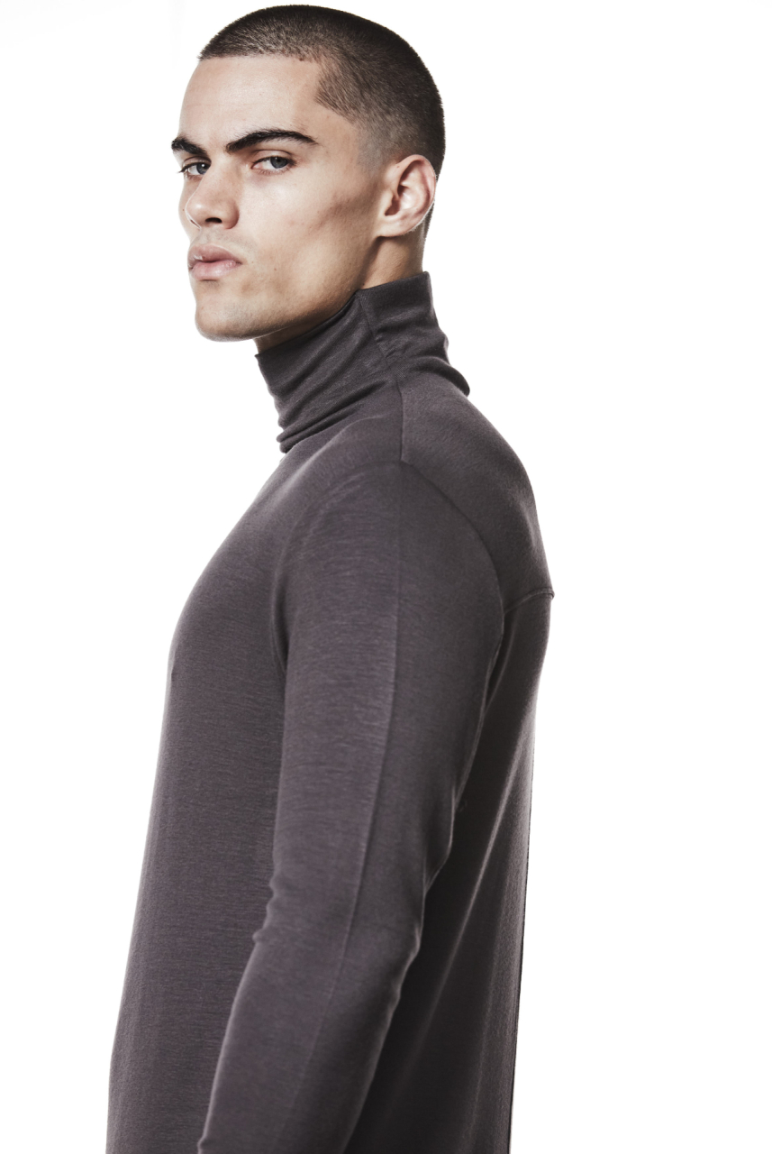 roll neck shirt slim fit long sleeves raw cut hem and cuffs double stichings soft fluidly viscose quality