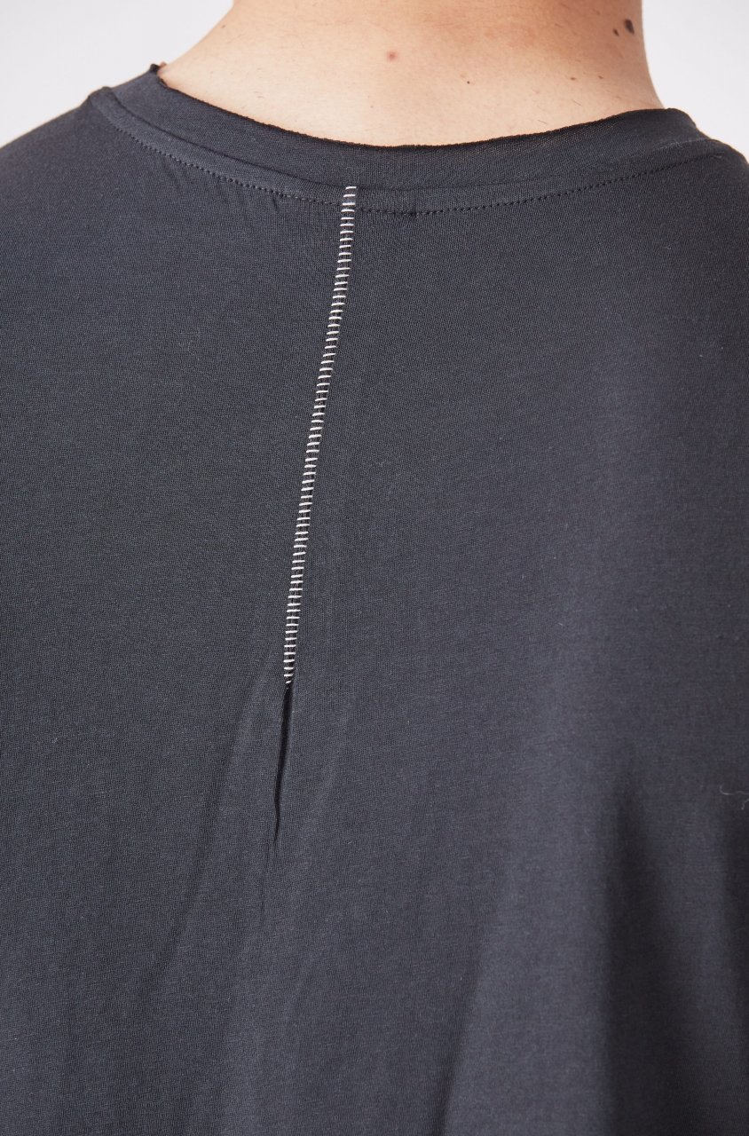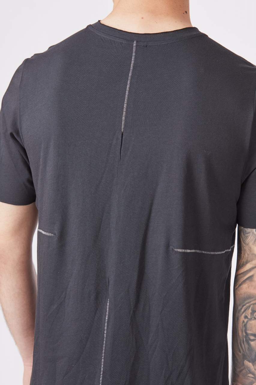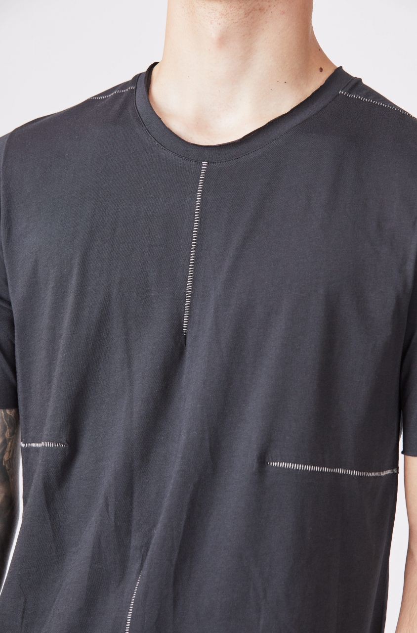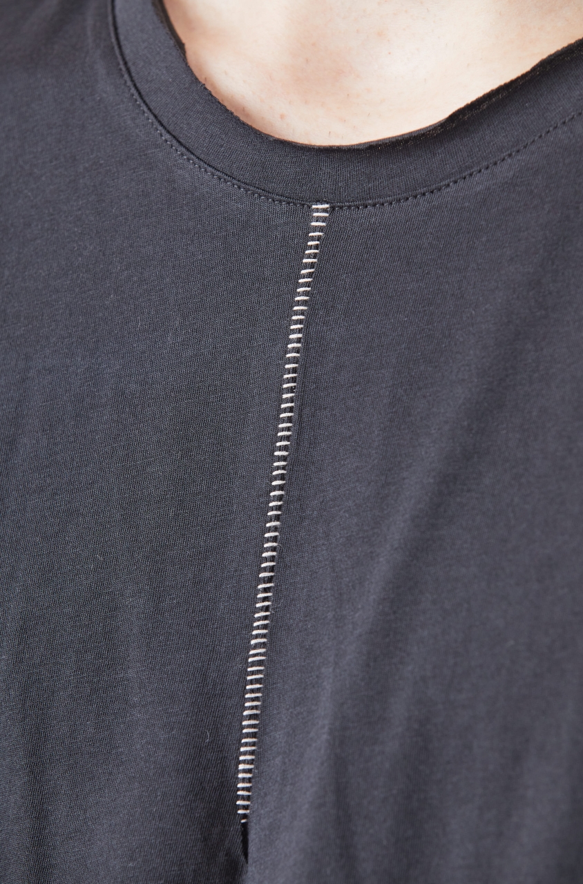 round neck short sleeves straight fit scar stitching seams raw cut hems
