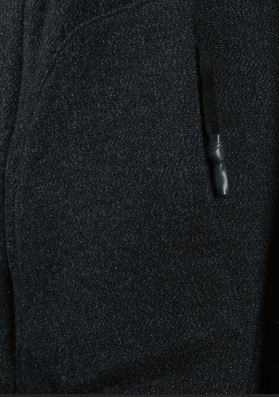 Пальто с высоким воротом и двусторонней молнией спереди, проклеенная кожей, накладные карманы по мокам на молнии, специальные застежки замки на рукавах, швы выполнены широким оверлоком, кожанная окантовка с крупными цепочками на воротнике, рукавах и внизу. Длинная кожаня спинка с фирменной скобой от 69 By Isaac Sellam
