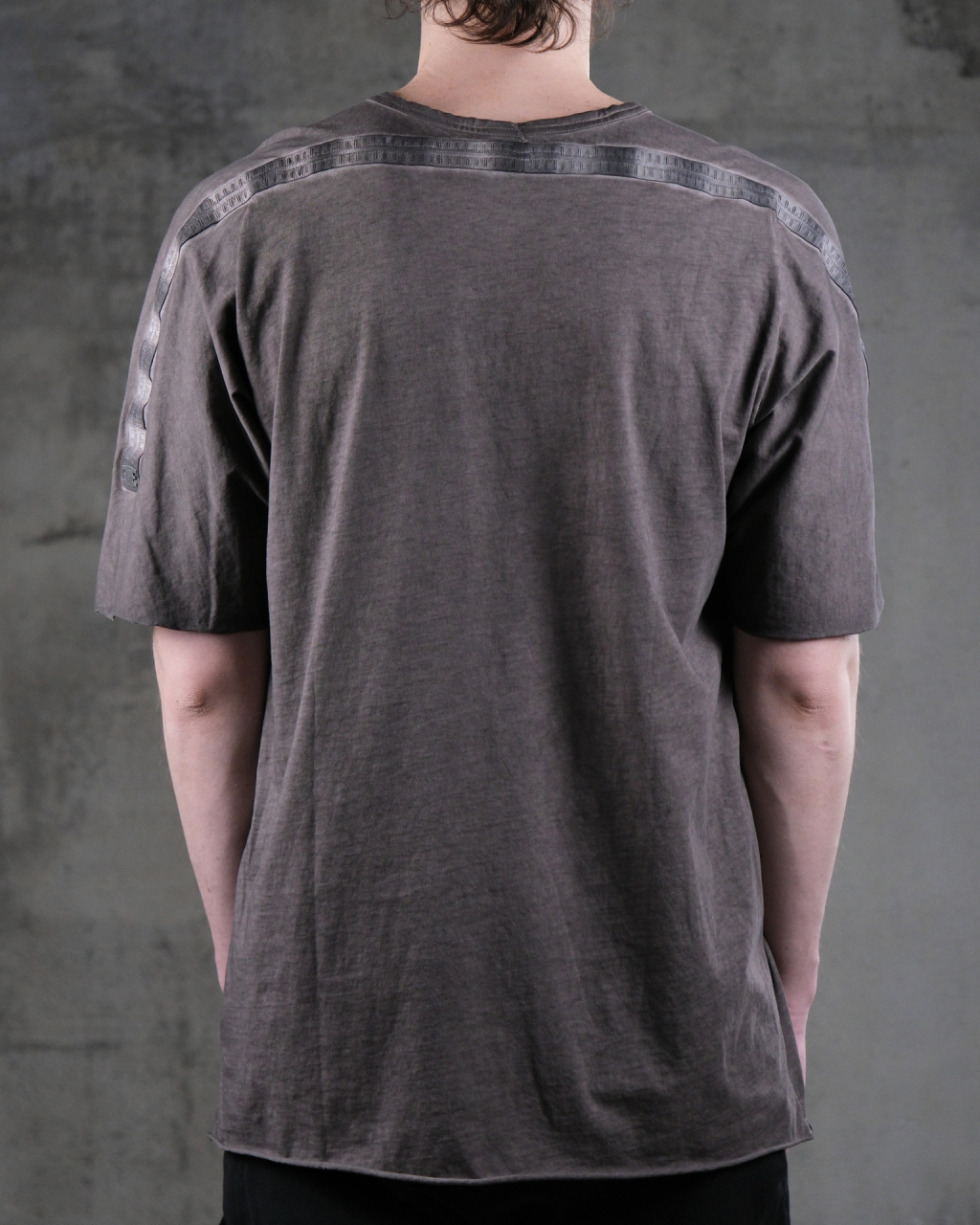 Футболка из органического хлопкового джерси. Модель свободного кроя, короткие рукава, круглый ворот, на спине кожаные тейпы с фирменной металлической пластиной.