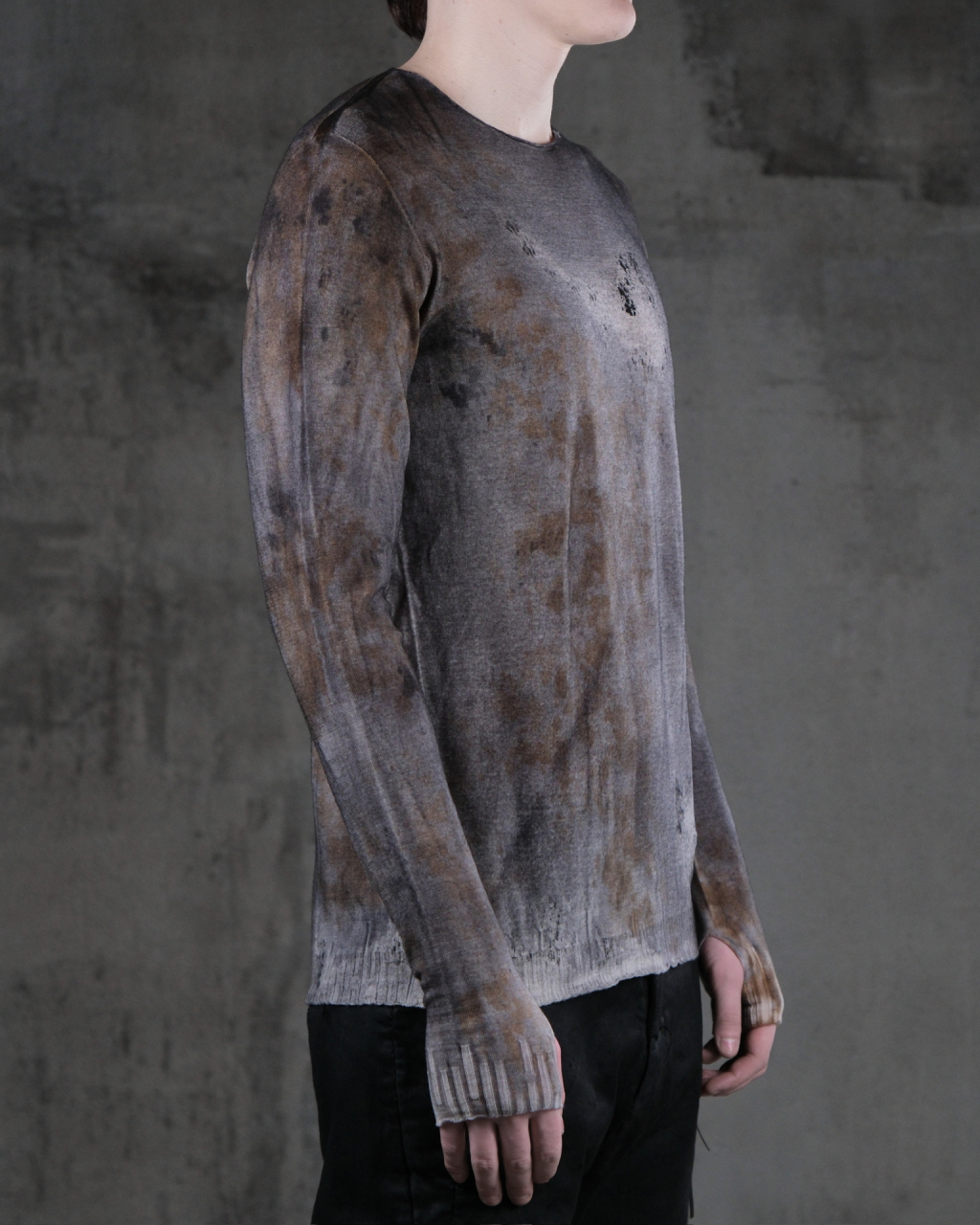 Мужской легкий шерстяной свитер, цвет получен методом ручного окрашивания распылением.
